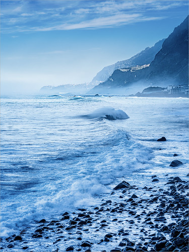 I enjoy the lead in here from the front left which gives this great depth. The timing is good with excellent detail in the waves and spray. The blue tone in intriguing but it all adds to the atmosphere of this shot. |