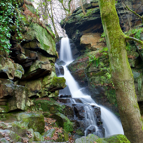 Waterfalls are a great scource of experimentation especially with shutter speeds and this is a good example. The water can be frozen or turned into a milky flow like here. Exposure has to be carefully monitored here as the highlights can easily burn out although I think we are just OK here. I would have cropped out the light area at the top and although the tree adds some foreground detail I might have experimented with other arrangements. Nice lighting and sharpness throughout the static areas. |
