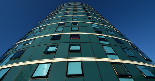 This picture obviously conveys both a great sense of depth and height. It is nicely and carefully arranged and all the lines take us through the image. I like how one window has a different coloured interior which catches the eye. Without this important element this image would have lacked that special something. |