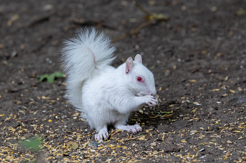 I assume this is an albino squirrel which makes it quite rare so well done for finding this and getting such a sharp and detailed image. The photographer has also managed to keep detail in that fur. With such a fine grained and sharp image it could have been cropped a bit closer to make the animal larger in the image space. The crowning glory of this is that pink eye, not only is a contrasting colour but it is pin sharp as well. |