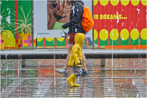 There is a great sense o movement here and the water and clothing all add to the story. I think there are two other images here which may have worked better as I'm not sure about the two figures overlapping each other. A second or two earlier would have them walking into the image and a second or two later would have them walking out, I'm sure either one would have worked. I do lke how the water droplets have been caught. |