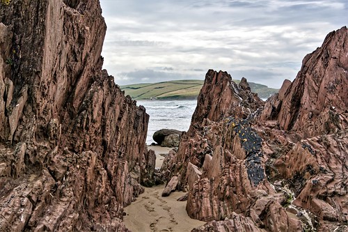 What a fantastic location and well done for finding a framed viewpoint looking out to sea. The depth of field is nicely controlled. I notice there seems to be a figure in the sea and it is a shame this isn't larger as it would have been a great zing point. Lighting wasn't on your side for drama but the overcast conditions have produced a wealth of detail in the rocks. |