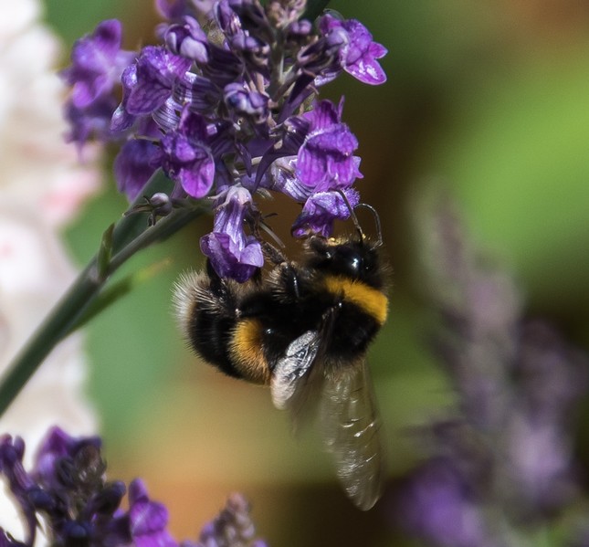 The bumble bee has been well captured here with good sharpness and detail with the additional blur of the wings which works well. I like the background detail which indicates this was taken in the wild and not in a studio. I would certainly have cropped out the large bright area top left but the rest is very good. |