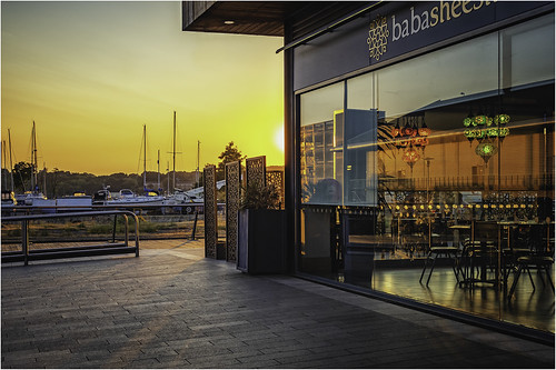 I like the colours captured here and the various shapes and shadows are good. It is a shame the sign is a distraction which is also cropped but irt would have been difficult to avoid that. Having he sun hidden behind the building also avoids the horrible burnt out disc we often see so well done for doing that. |