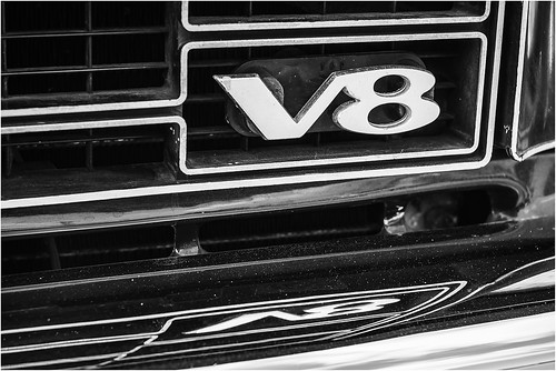 Abstract car details often work well and I like the idea behind this one. The badge is very striking and the reflection is a nice touch to the composition. The high contrast has created some bright areas which catch our eye especially the large bright area at the bottom. I'm wondering whether a straight on view could have lessened that and strengthened the image overal. |