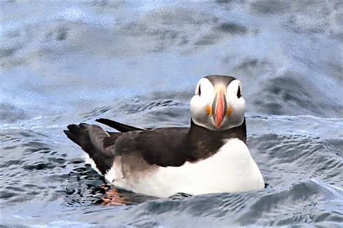 I enjoyed this image very much. It is a colour picture but with a very limited colour palette of blues and greys. I like the eye contact between the seal and the viewer and most importantly the eyes are nice and sharp. A nice added touch is having the seal just off centre in the image space. Very nice indeed. |