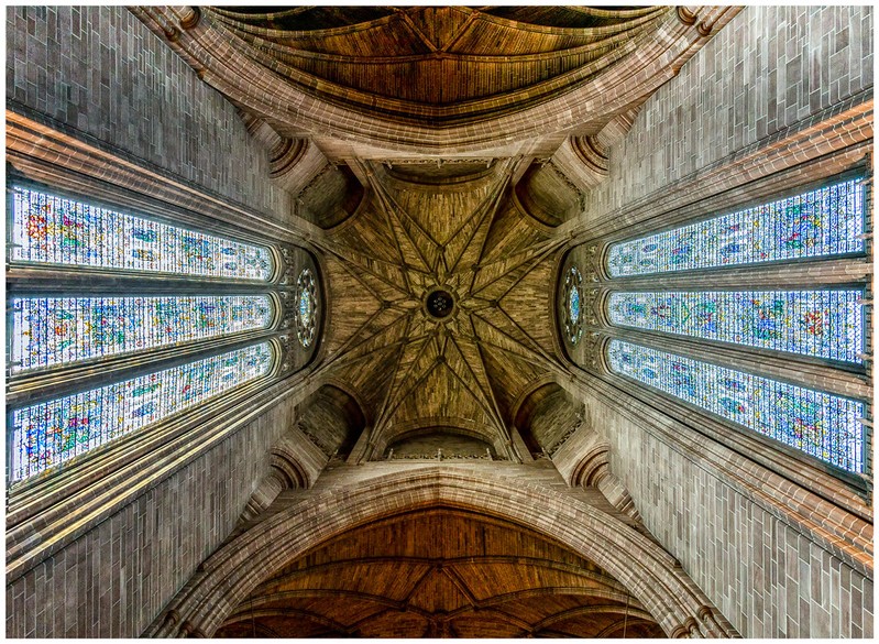 The vault roof under the Vestey Tower of Liverpool Cathedral |
