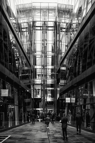 I like the composition here and how the various lines pull us into the image. The figures in the foreground are also nicely placed. The use of monochrome has produced a contrasty image which is unfortunately a bit busy. I would certainly have darkened down the top of the image. Well done on spotting the scene though. |