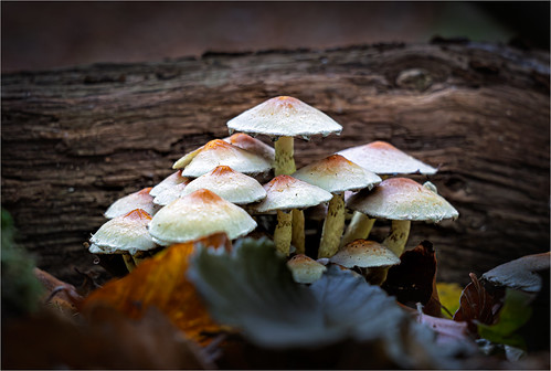 The subdued lighting here has really emphasised these fungi with detail throughout the contrast range. It could have been very easy to lose the highlights in the caps but it is still there. It appears a wide aperture has been used which has isolated the group well but I am a little distracted by the large areas of out of focus detail in front of them. Still a nice autumn feel to this. |