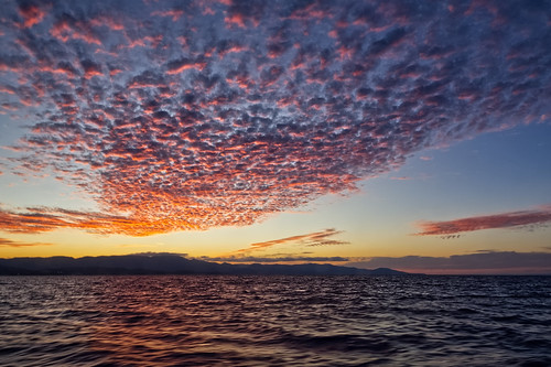 What a striking sunset image. The colour in the sky seems to explode out across the sky area and is nicely reflected in the sea. It is interesting how there is movement in the waves but everything else is nice and sharp? This adds a sense of dynamism to the scene I feel. In an ideal world there would have been a boat silhoueted on the sea of vourse but as presented it is very good. |