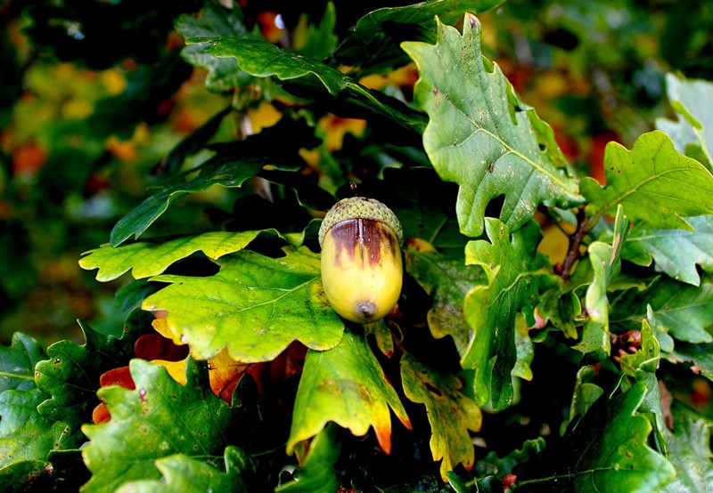 Likes : the single acorn among the busy scene created by all the foliage. |