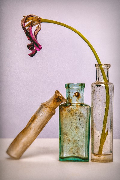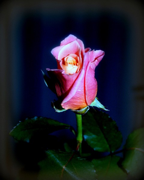 High contrast treatment of this rose with some very bright areas and dark, somewhat complicated, surrounds not really working. |