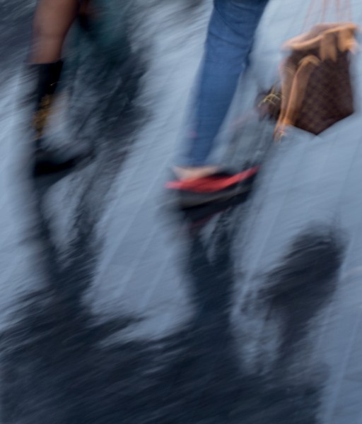 Likes : inventive use of shutter speed, frame well filled with legs and shadows. Caught at the right point of strides. Red on shoe catches attention. Shiny surface. |