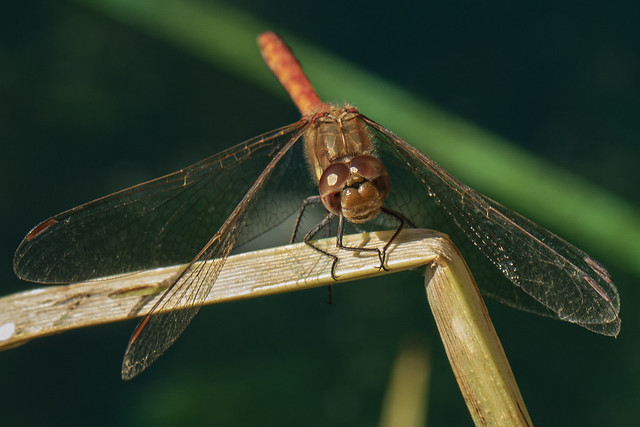 This is a nice macro shot. We often see these images in profile but this face on approach has worked well. Focussing is spot on for the face which has thrown out the tail completely which is to be expected. The surrounding vegetation gives a natural feel to the image. I would have cloned out the white spot on the left edge of the image but otherwise this is very good. |