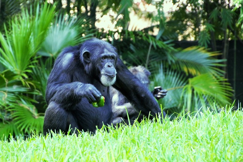 There is real character caught in the face of this monkey and the fact he is holding something adds to it. Focussing is spot on for the subject which has been nicely separated from the background. I would suggest cropping out the highlights in the background and certainly darkening the very bright foreground grass area. There does appear to be colour balance issue as well but this can be easily sorted. |
