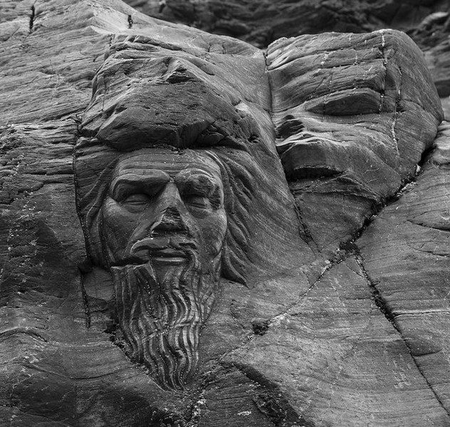 What a great subject just crying out for this monochrome treatment. I would crop out the dark area at the top and work some more contrast and detail extraction into that wonderful rock texture. |