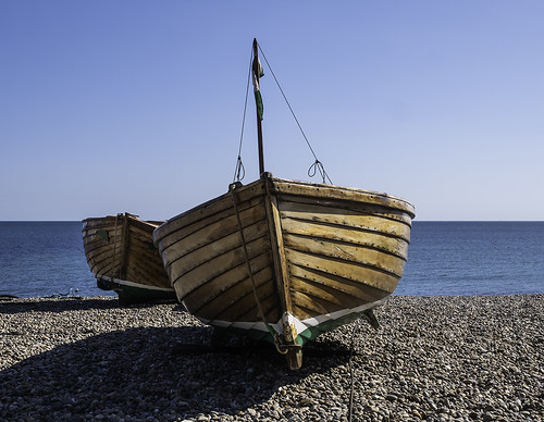 This is a competent study of these two boats. Detail, sharpness and exposure are spot on. The texture of the wood is rendered well and this colour contrasts well with the blue tones of the sea and sky. Well done on getting the horizon level which can be so easily missed in images like this. I wondered if the image may benefit from another element such as a seagull or another vessel but as presented it is a nice image. |