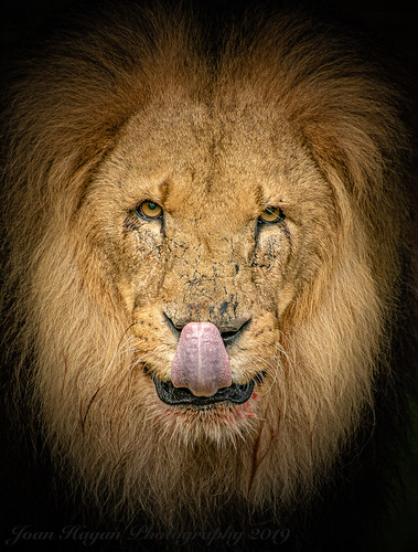 An extremely powerful image particularly with the eye to eye contact. The detail and sheer quality of the image is very high. I'm not sure about the completely black vignette, I wonder if the surrounding detail could be subdued but leaving just a little for the viewer to enjoy. The tongue of course is the icing on the cake here. |