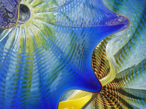This is a very good pattern picture. The photographer has homed in on a detail and has also arranged it very well. This Dale Chihuly coloured glass piece has been excellently lit.The dark portion in the top left is very important and it must be added how the colours work well together. |