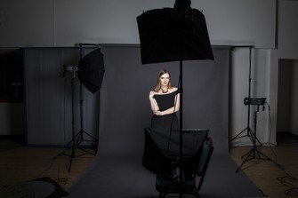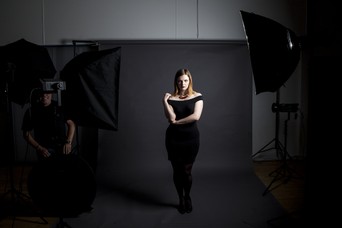 Clamshell lighting is when the photographer uses two frontal light sources to illuminate the subject, helping to minimize shadows and often giving a glowing effect. Though usually achieved by using studio strobes, it can also be achieved using constant studio lights. Think of your two light sources as the shells, and your subject is the happy clam in the middle.